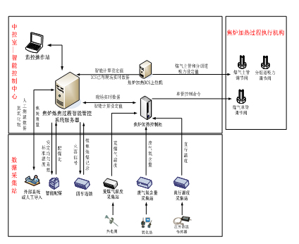 After the intelligent calculation center comprehensively analyzes the data, it intelligently adjusts the set value of the gas main, the set value of the suction of the flue gas, the opening degree of the single-pipe regulating valve, and optimizes the standard temperature to ensure stable and uniform temperature in the coking process. The intelligent computing center communicates with the DCS system to achieve data sharing and bumpless switching.
