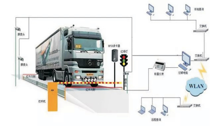RFID智能稱重系統主要由電子汽車衡、計算機、打印機、視頻監控、RFID讀卡系統、紅綠燈、道閘及防遙控作弊儀等組成。該系統也可在用戶現使用的電子汽車衡的基礎上,加裝硬件和軟件升級使用。系統采用標準的WINDOWS窗口界面,中文提示,用戶操作 簡單直觀,查詢和統計報表方便,并真正做到了對計量工作隨到隨結,使稱重數據準確、可靠,提高了工作效率和經濟效益。系統具備人工和智能無人值守兩種人性化操作模式。在智能無 人值守狀態下,不需要人工干預就可以完成稱重和磅單的自動打印, 是計量現代化的有力助手。